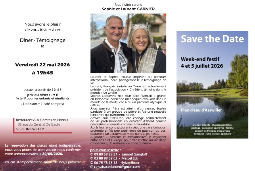 Laurent et Sophie, couple inspirant au parcours international, nous partageront leur témoignage de vie.