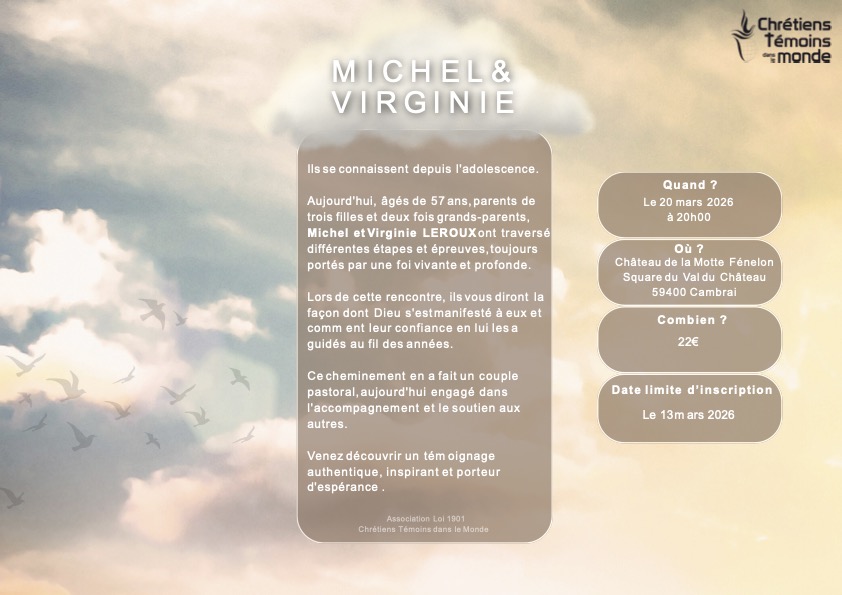 Aujourd’hui, âgés de 57 ans, parents de trois filles et deux fois grands-parents, Michel et Virginie LEROUX ont traversé différentes étapes et épreuves, toujours portés par une foi vivante et profonde.